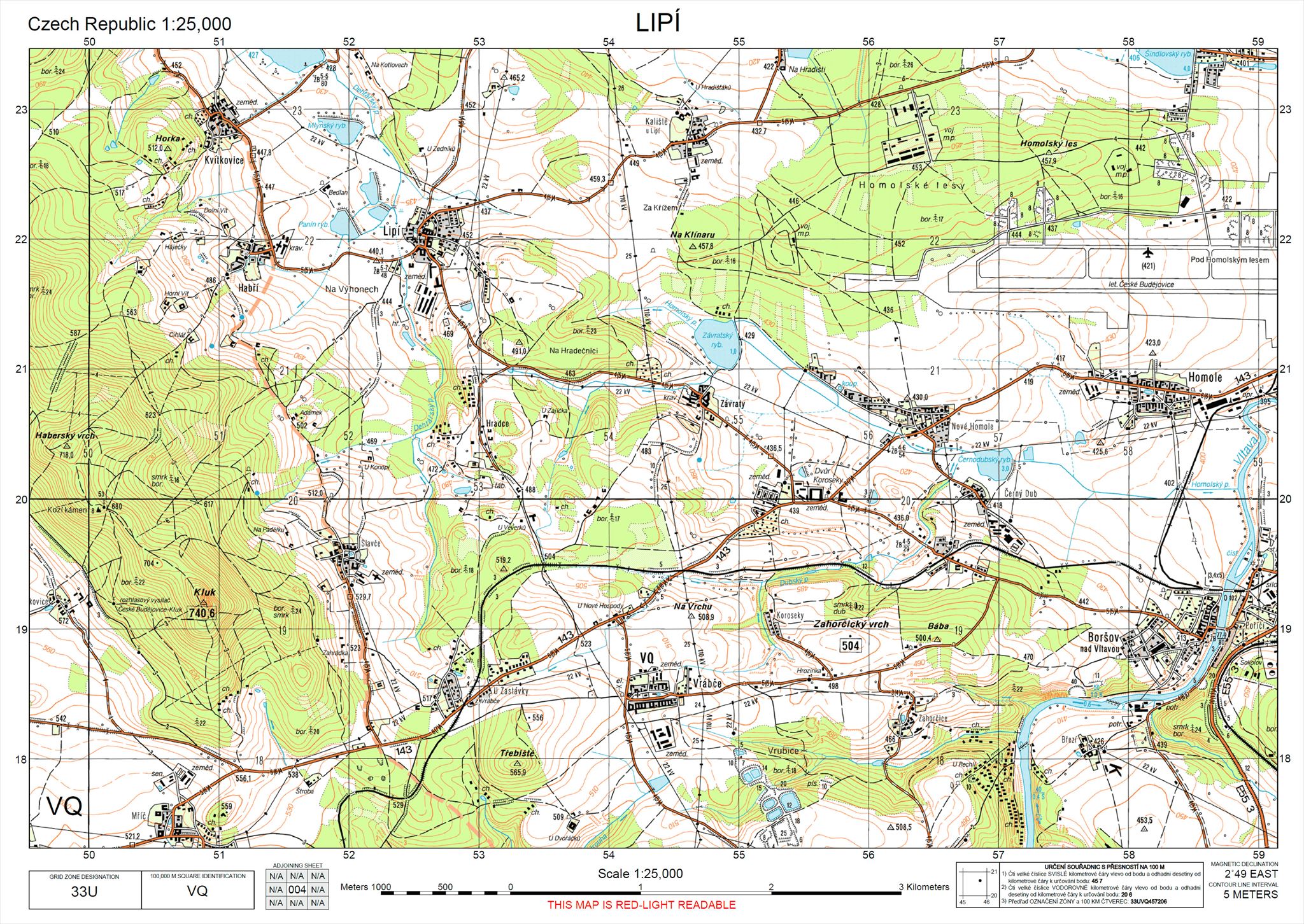 Konkrétní lokální mapa v NATO standardu vypadá s kilometrovou MGRS sítí pak například následovně: