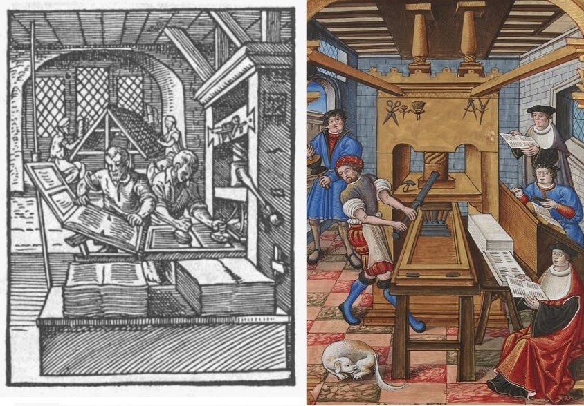 Před Gutenbergem byl v Evropě rozšířen pouze blokový tisk (deskotisk), kdy se stránka včetně písma i obrazu kompletně vyřezala ze dřeva či odlila a pak vytiskla. Pro každou tištěnou stránku musela být tedy vytvořena zvláštní deska, což bylo značně zdlouhavé a nákladné. Gutenberg přišel s myšlenkou sestavit stranu z písmových kuželek, tj. matric jednotlivých znaků (písmen), která se dala opětovně přeskupit a použít znovu, což celý tisk podstatně zefektivnilo a urychlilo. Přestože sestavování podkladů pro tisk z dřevořezů jednotlivých znaků bylo již dříve známé v Číně (nejde tu ale o abecedu), považuje se v Evropě za vynálezce tohoto principu několik osob, např. Nizozemec Laurens Janszoon Coster (Haarlem, asi 1370–1440), zvaný též Donat, nejčastěji ale právě Gutenberg.