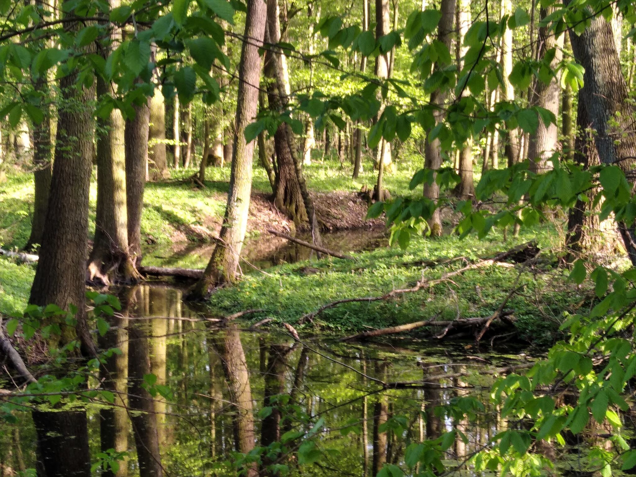 Život v lužním lese ovlivňují různé tůně a slepá ramena původního toku řeky Cidliny. Ta se kdysi vlévala do Labe o kus dále po toku než dnes. Cidlina se při ústí dělila na několik ramen. Hlavní teklo jako nyní okolo Libice, další koryta tekla okolo původní osady a bývalého hradiště ze severní i jižní strany, tak že tvořila uprostřed obydlený ostrov. Kousek od úvodních souřadnic po obou stranách cesty vidíte pozůstatek těchto ramen a tůní, které výrazně ovlivňují život v lužním lese. Je zde výskyt různých druhů živočichů a rostlin.