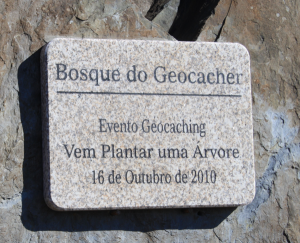 The plaque was placed after the CITO event. The plaque and the new cache have the same title. They’re both called “Bosque do Geocacher” (GC2FPJW). It translates to “Geocacher’s Grove.”
