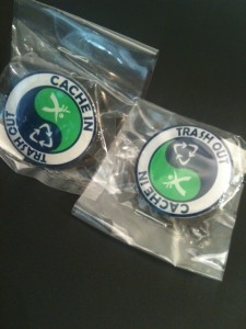 The winner receives this, ‘barely coveted prize.’ The prize isn’t just one, but two Cache In Trash Out pins.  If you’re looking for a CITO event to attend check the calendar to find one near you.