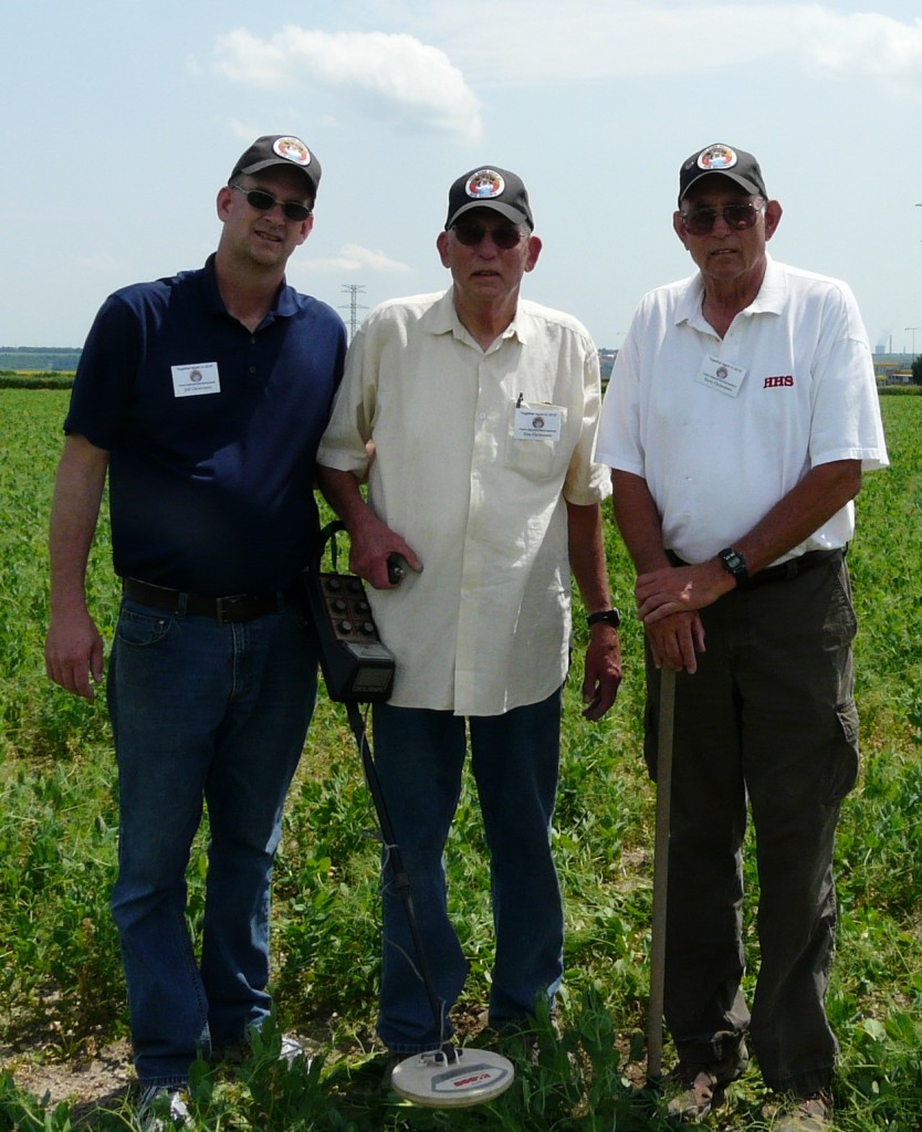 The coordinates from TwiceRap’s cache brought Coach Steve nearly on top of the crash site. More than 60 years after the B-17 went down, Steve found a tangible connection to his father. He says, “One of our Czech friends took us out in the field where we thought the crash site was (the power line that showed up in the original photo is still there) and we started to cast around with the metal detector. Then I remembered the coords from TwiceRap’s cache and it took us to where we started to find small parts of the wreckage after 65 years. We got a whole bag full of pieces. Pretty exciting.”