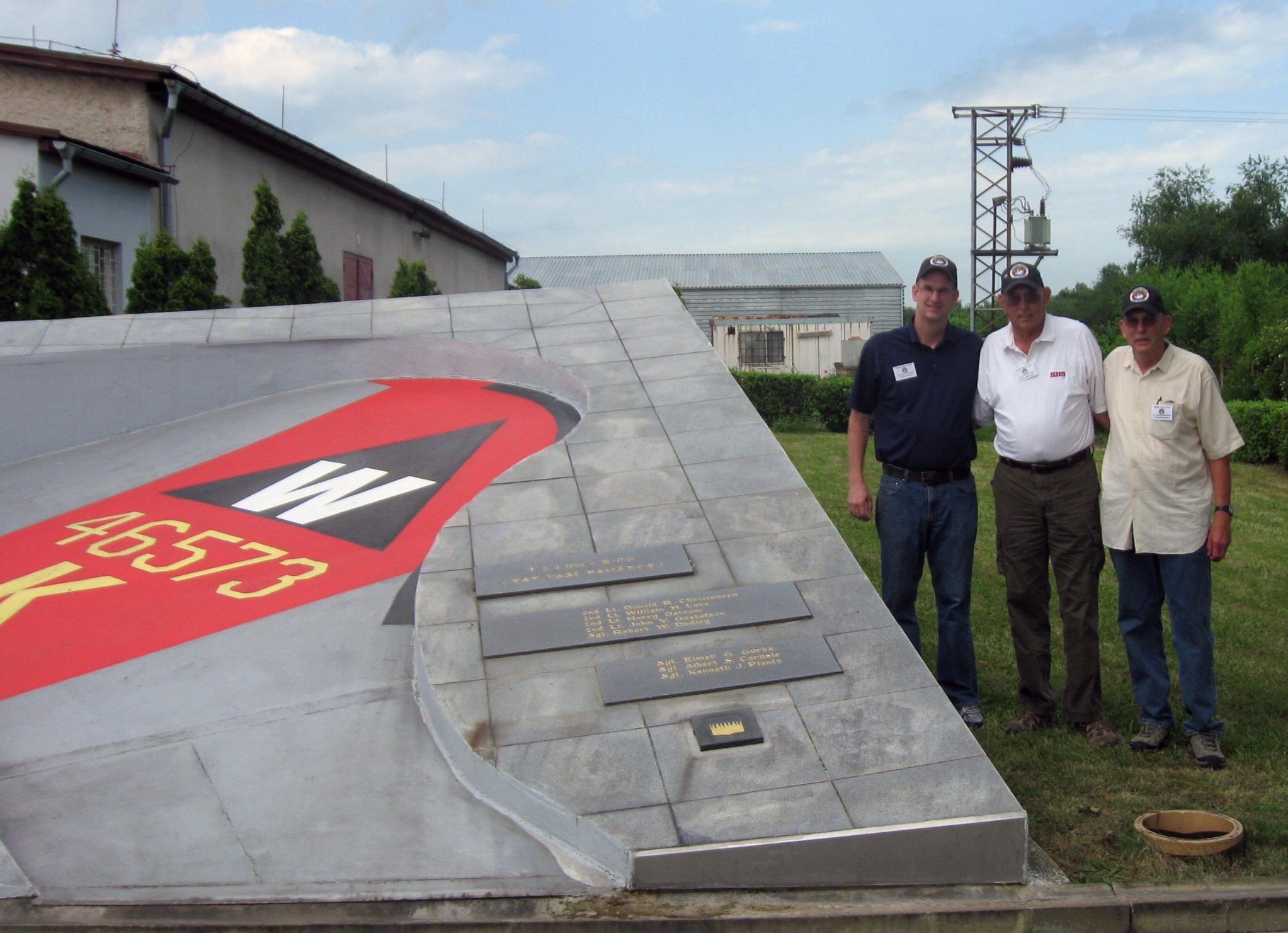 Steve and his brother began to research their father over the internet in 2004. Steve says, “We found the 398th bomb group memorial site and found the mission he was on when he died and some very short eyewitness reports from other pilots… The first picture that came up was a picture of the crash with some German soldiers standing by it. We could see a power line in the background and made note of that location in case we ever got there. The next picture that came up was of the memorial [to his father’s B-17 crew] in a little town called Slany. We were floored. We knew nothing about it.”