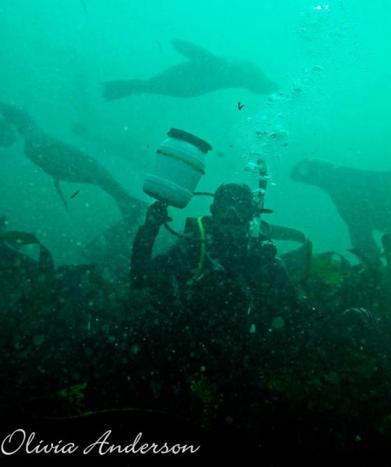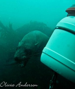 The seals” swooping underwater ballet inspired Pauline. “One of my favorite spots in the world is the Cape Fur Seal Colony of Duiker Island, near Houtbay in South Africa. Every time my airline sends me there, I go down to dive with them. During one of these dives I met my dive master friend (and now cachebuddy) “Tomdog707.” Together we hatched a plan for a super cool underwater cache to show the rest of the (geocaching) world this awesome place!”