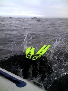 Geocacher paddawon writes, “I was feeling a bit rusty but followed AndyT1 overboard and down we went. The great white mystery was soon to reveal itself. We opened the fantastic container and signed the logbook… The seals were beginning to awaken from their slumber and get out of bed. Soon they were whizzing all around us… All too soon we surfaced and gracefully clambering back on board the board. I think some of the seals acquabatics must have rubbed off. What a fantastic cache! A huge amount of time and effort has gone into the container and makes it all the more worth while. Thanks to Nekozoeki and Tomdog707 for placing the cache and getting me out here.”