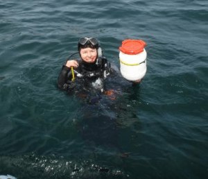 The good luck keeps rolling. A team of geocaching divers logged the FTF shortly after the geocache was published. They rewarded Pauline and Tom with great logs.