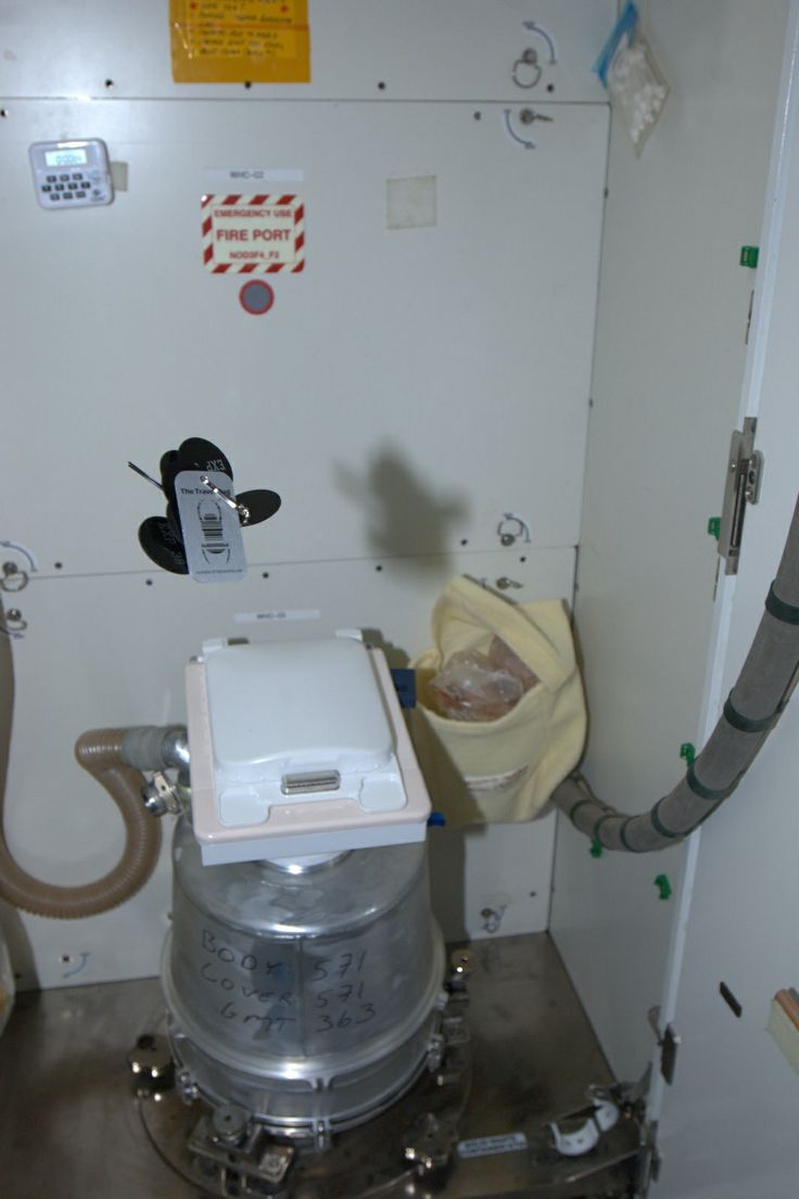 Here on station we recycle our air and water. In the first picture you can see the travel bug visiting our toilet. This is where the water goes into the system. In the second picture the travel bug is visiting our water dispenser. This is where the water comes out of the system. So yes that means our urine is recycled into clean drinkable water. The water in the atmosphere from our sweat and wet towels and other sources is also captured, condensed into a liquid and recycled. We try not to waste any water on the ISS.
