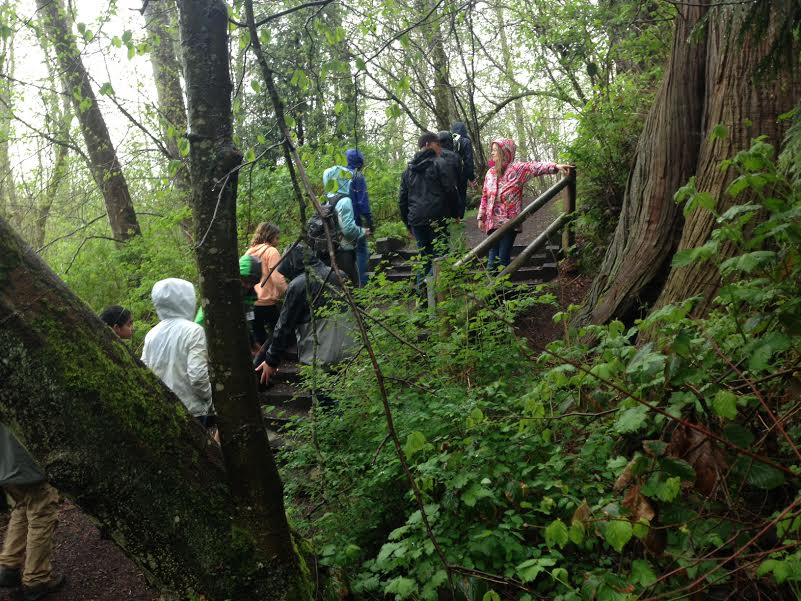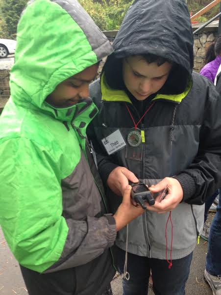 So how did the presentation with the dreaded middle schoolers go? Amazing. This was the greatest group of youngsters you could ever hope to geocache with. They were riveted by the geocaching presentation and remained two steps ahead of us with every engaging question. When it came time to leave the classroom and enter into the woods on this particularly rainy day, the kids charged ahead brimming with enthusiasm. The students worked together in pairs, one using a compass and the other piloting a GPS heading towards a staged geocache their teacher had placed specifically for them. They worked their way quickly towards the find and made up usernames on the spot when signing the staged logbook. How “XXthekillertacoXX” came so quickly to one young lady’s mind I’ll never know, but a greater username I challenge you to encounter. The adventure came to a close upon returning to their classroom where the students excitedly talked about how they could share this fun new activity with their families. This afternoon in the woods with youngsters reminded me that Geocaching really can be fun for all ages, even tweens when presented correctly.