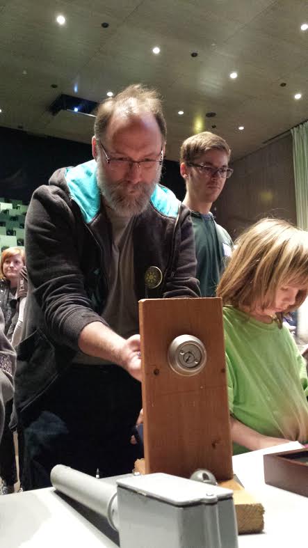 Following the presentations geocachers explored an exhibition highlighting local makers and their most creative caches. Geocachers were able to ask the makers questions and examine all the moving parts on some very unique cache containers.