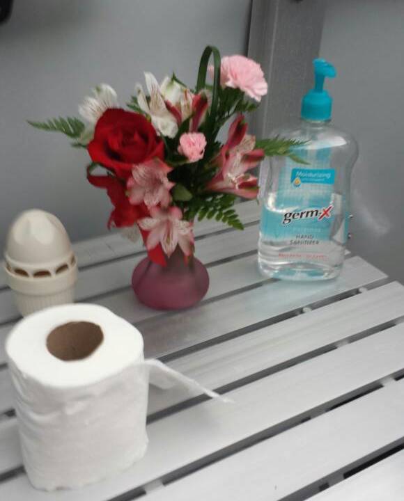 And, of course, no portable toilet would be complete without a bouquet of flowers.