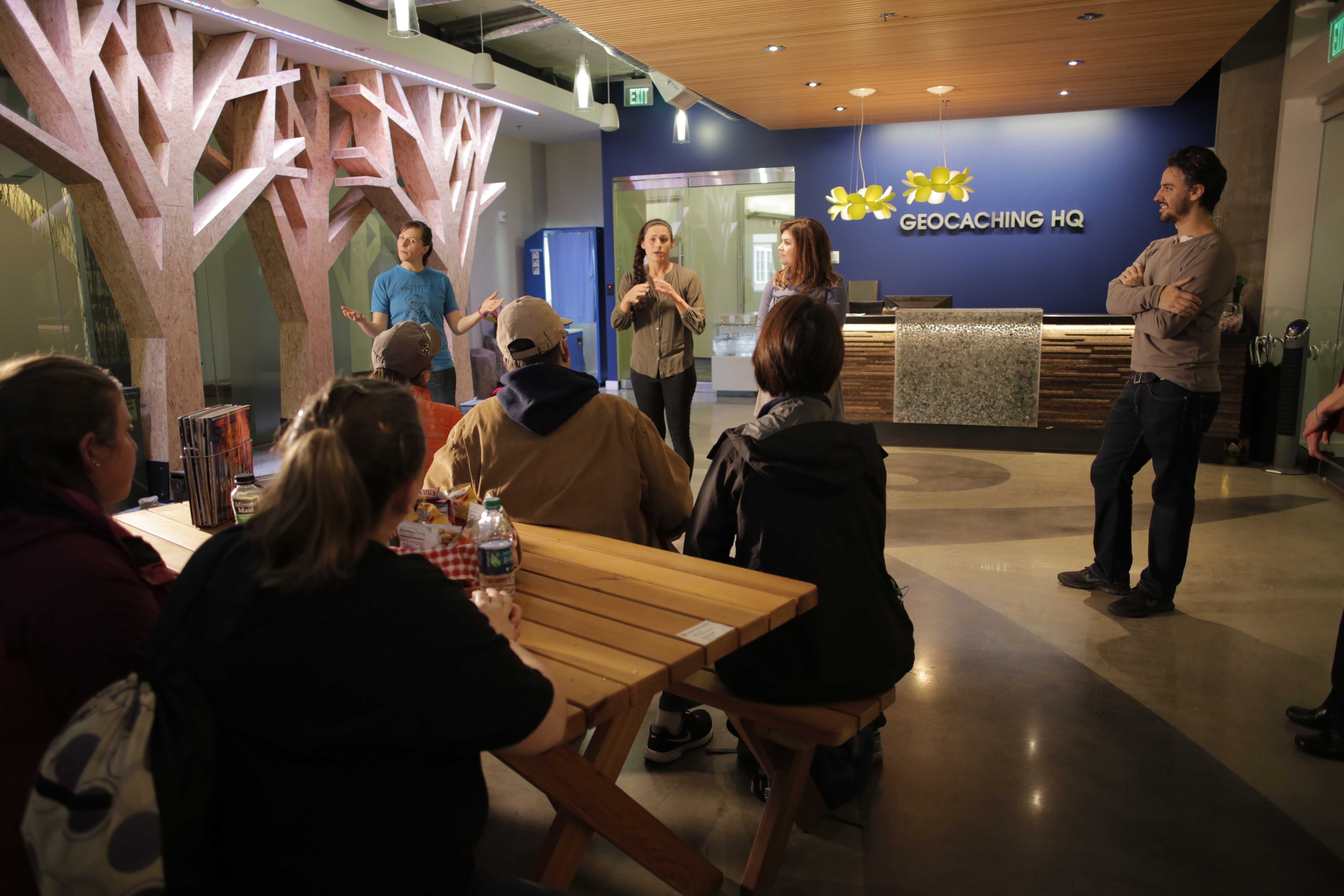 On March 25th, it was our pleasure to invite two ASL interpreters to our Geocaching HQ Hosted Visit for the first time! The hour long visit provided the opportunity for deaf geocachers to come to HQ and get the same experience as any of our other guests. It was an awesome experience for guests and staff. We covered Geocaching history and the growth of our company from 3 employees to now just under 80, swapped geocaching stories from back home, and traded a few trackables, too. The hour flew by too quickly but we already have plans to invite the interpreters back another time!