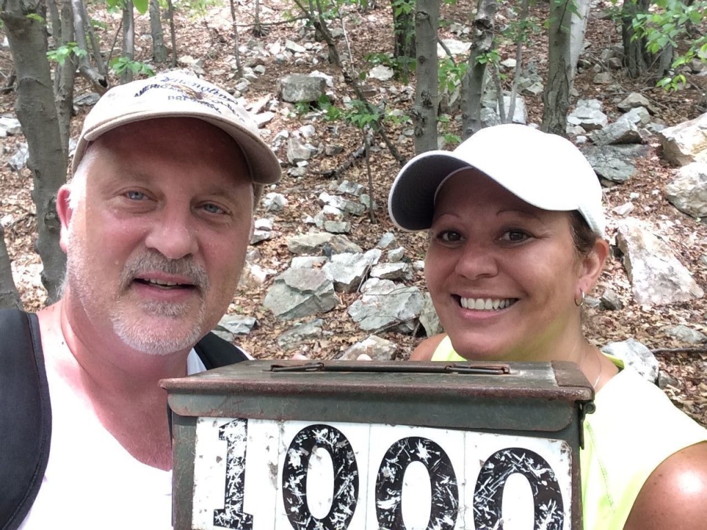 “We first visited Thousand Steps about 20 years ago with our kids. They were around 10 &12 at the time. A few years later we started Geocaching as a family & decided to place a cache up at the top where the view is amazing. We use to go up a few times a year for maintenance. I even took up small bottles of water for those who didn’t bring any. In the past few years it’s been about once a year. Our daughter has helped with it also. We’ve even had fellow geocachers who were kind enough to help.”
