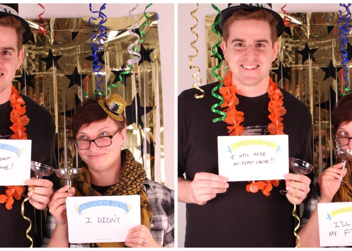 Post your great New Year’s photos to Twitter, Facebook, or Instagram using the hashtag #Geocaching and this downloadable Goodbye 2015 / Hello 2016 template (see photos below). Tell us your favorite memories from 2015 and your geocaching resolutions for 2016. We can hardly wait to see what the New Year brings everyone!
