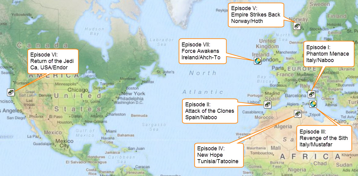 Nerds. They’re all around us. Some nerds are into geocaching. Some nerds are into Star Wars. And some nerds are into both. A quick Google search for, “geocaching Star Wars” returns multiple interstellar geocaches, bookmark lists, blogs, vlogs, Trackables, and just about anything. Here are seven geocaches you can visit near filming locations—one for each episode of the series.