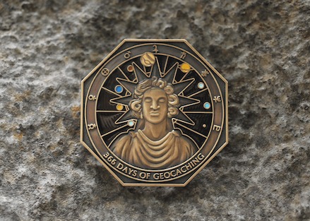 The theme even carried over to our Leap Day Geocoin, which featured the Roman god of the sun—Sol Invictus—on one side, with the planets in orbit around his crown. The other side was a functioning sundial, which is not as easy to design in as some might think.