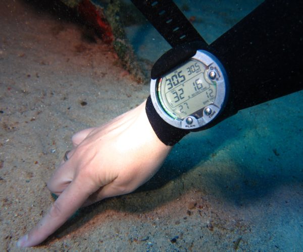 “As I was by myself I did a guided dive on this great wreck. Thanks a lot for all the information provided – the ship really has an interesting history and appears to have (been) sunk in a perfect location… Visibility was pretty good and there were no other divers apart from us. Using nitrox we could spent enough time to explore the wreck and of course to ‘stoop down and with the finger write on the ground’ my cachername ‘kinderarzt’… Although, by now it has probably turned into dust and ashes. Great idea – worth a blue ribbon just as blue as the surrounding water. TFTC” –kinderarzt