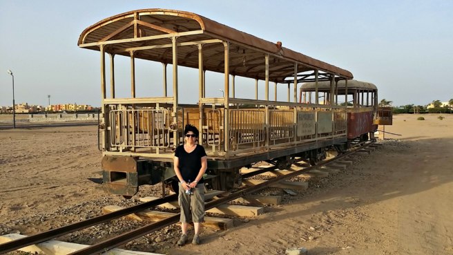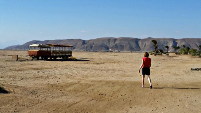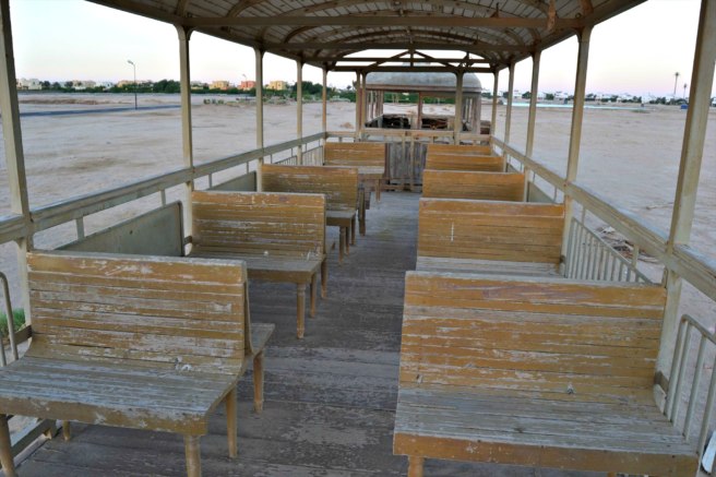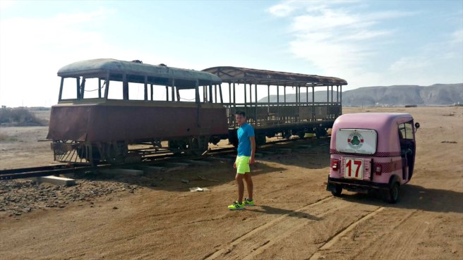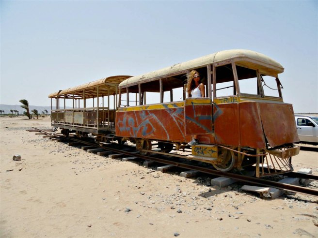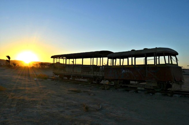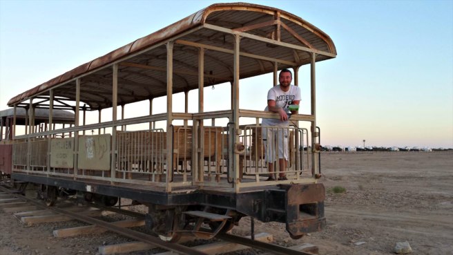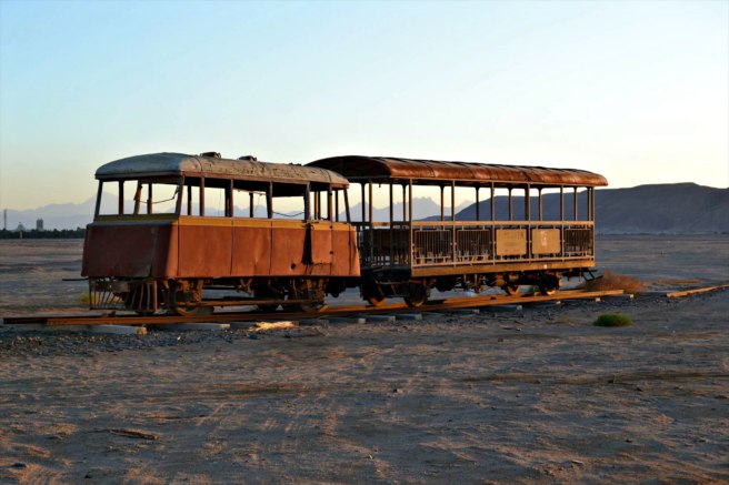 But just 10 minutes outside of this luxurious area, you will find something very different: an old train left stranded in the desert.
