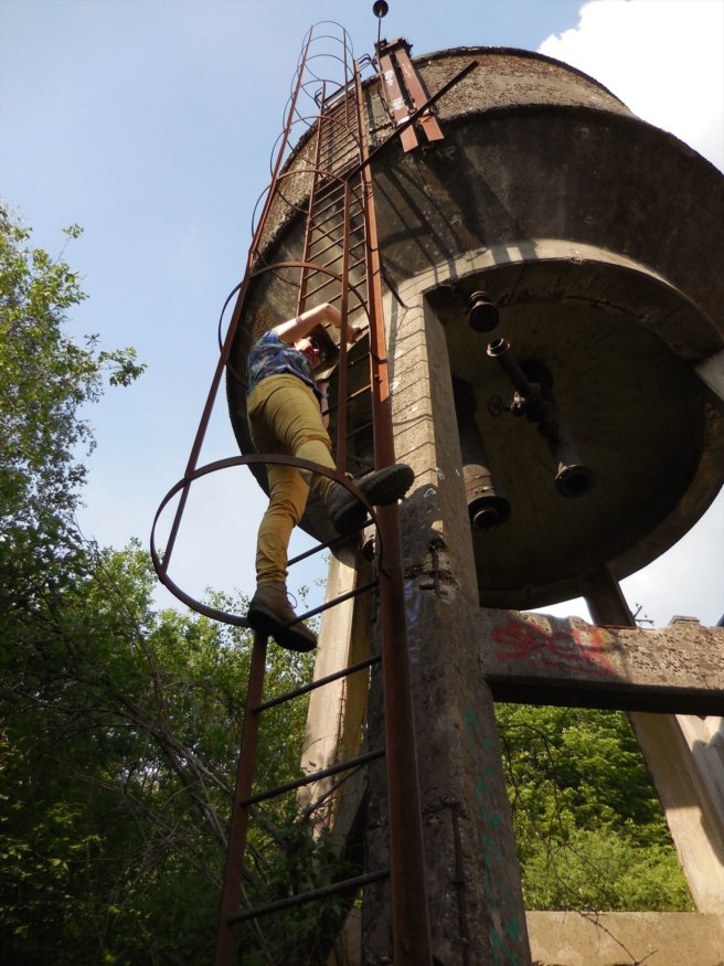 The cache owner urges cachers not to attempt this T5 cache alone and to bring proper climbing gear. To log your find make your way through the factory and climb up high on one of the structures.