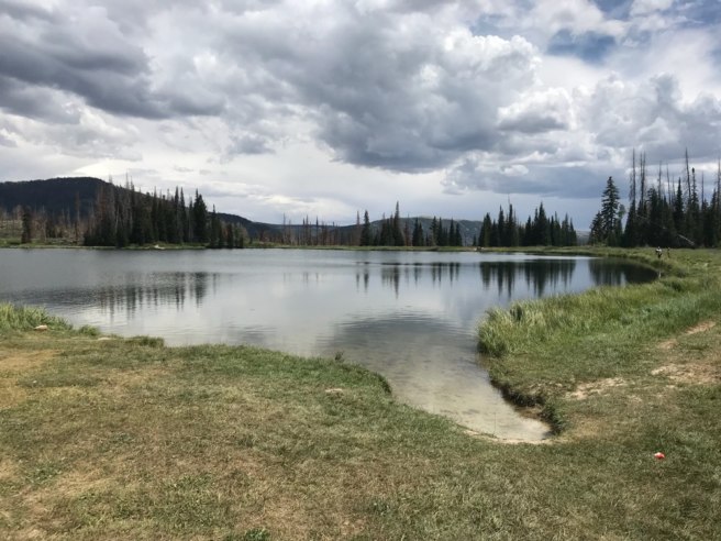 Potters Pond (GC3B, Utah, USA). Located in a high mountain valley (approx 9200 feet elevation), it’s about 2.5 hours to drive from Salt Lake City. The last 11 miles or so are on dirt road. (Helpful driving information is contained in this log by a Utah community volunteer reviewer.) Once you make it all that way, the hike from parking to ground zero feels relatively easy. It’s a nice, big cache in a forest. Classic geocaching.