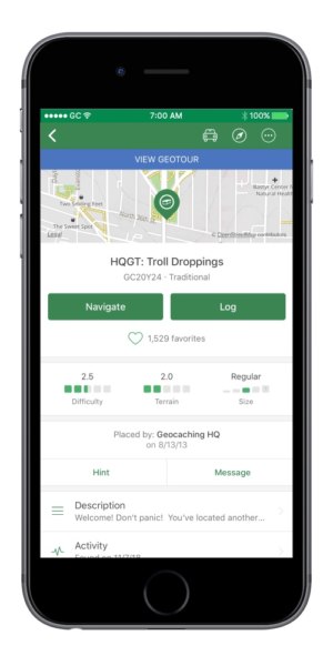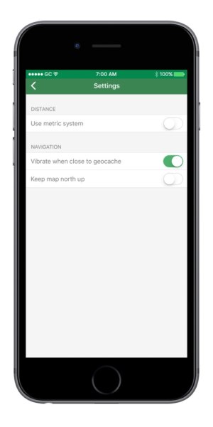Hemos cambiado el sonido de notificación de «cerca del geocaché» a una vibración más sutil. Visita Configuración para seleccionar está opción más sigilosa. Tu telefono vibrará cuando estés a 10 metros (32 pies) del geocaché.