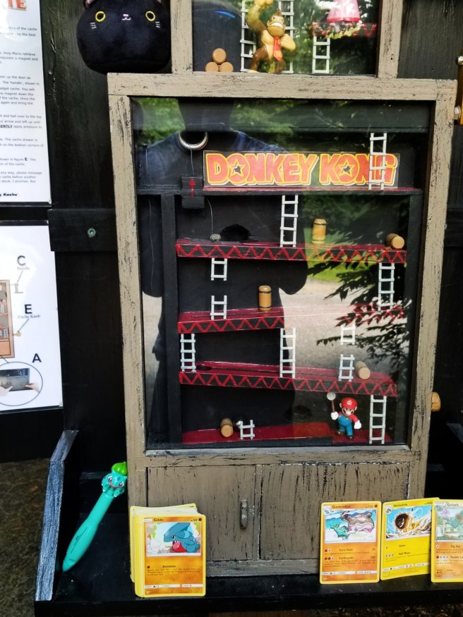 But wait, there’s more. This CO recently figured out how easy it is to add sounds to gadget caches, so now Donkey Kong video game music plays when the door to this cache is opened. Righteous!