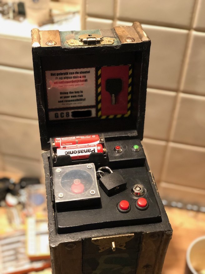 Aber es gab einen Geocache, der mich dazu brachte, Geocaches selbst zu bauen und zu verstecken. Das war der erste Geocache mit einem Feldrätsel: ein Fahrrad mit einer Brust. Ich musste den Sattel abnehmen, um an einen Schlüssel zu gelangen, dann konnte ich mit dem Schlüssel eine Truhe öffnen. In dieser Truhe befand sich ein abgeschlossener Geocache mit hunderten von Schlüsseln. Das war eine Herausforderung, die mir viel Spaß gemacht hat. Vor allem die verschiedenen Schritte gaben mir einige euphorische Momente und ein wunderbares Gefühl. Mein kreatives Gehirn begann sofort mit voller Geschwindigkeit zu laufen. Nach einigen Wochen versteckte ich meinen ersten verrückten Cache: “Get Twisted“.