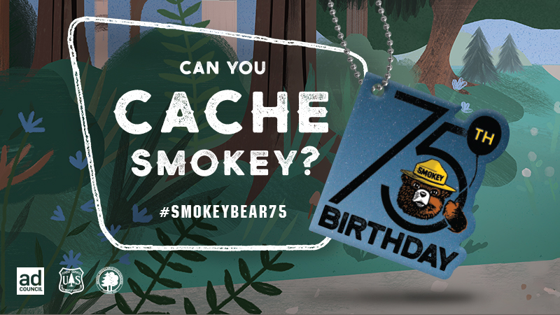 To celebrate Smokey’s 75th birthday, Geocaching HQ is partnering with the Smokey Bear Wildfire Prevention campaign from the USDA Forest Service, the National Association of State Foresters and the Ad Council to create custom Smokey Bear trackables. Request an iconic Smokey Bear trackable at geocaching.com/SmokeyBear and share your geocaching outings with #SmokeyBear75.