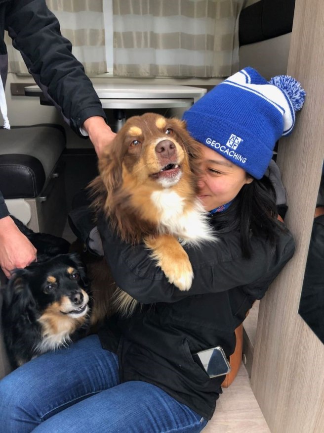 I had the honor of being one of Signal’s handlers along with A Jennifer. Wow, I thought geocachers got excited to see Geocaching HQ’s’ co-founder Bryan, but reactions paled in comparison when Signal was around!