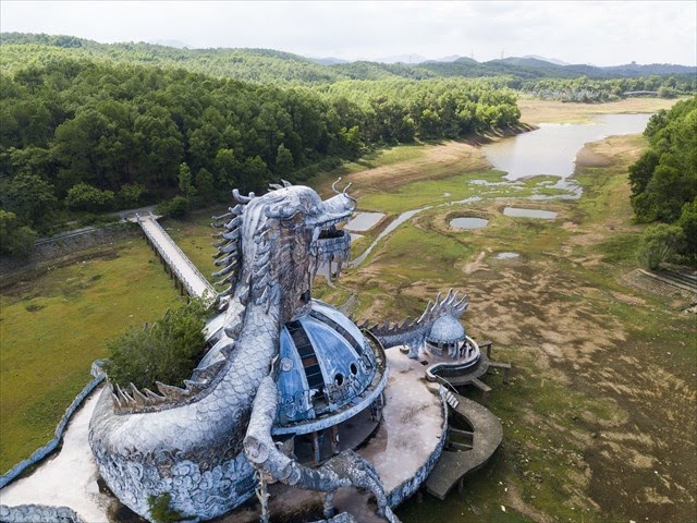 Now visitors come to Ho Thuy Tien to see how it has changed. The space that once resounded with warm weather cheer is now filled with an air of mystery, where the impressive structures rust and the natural surroundings slowly take over the park.
