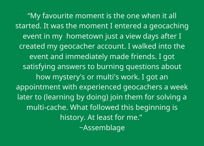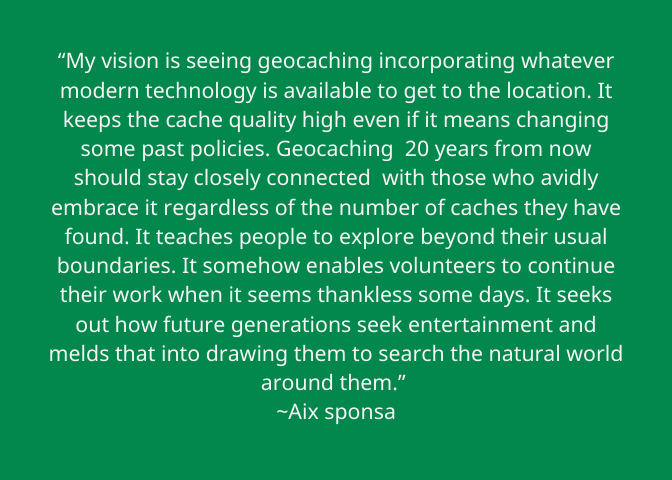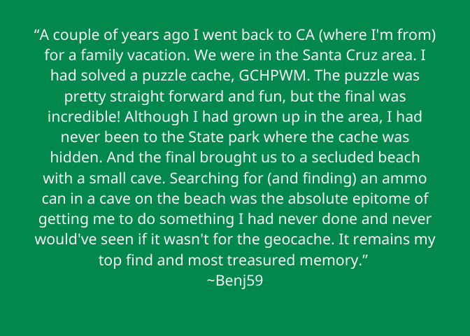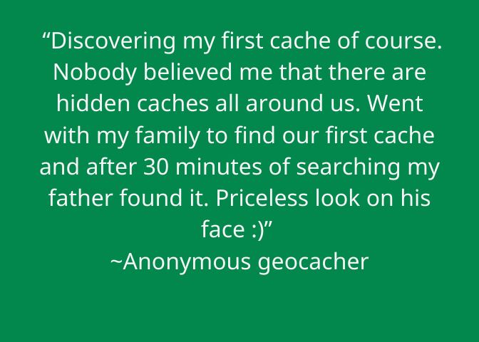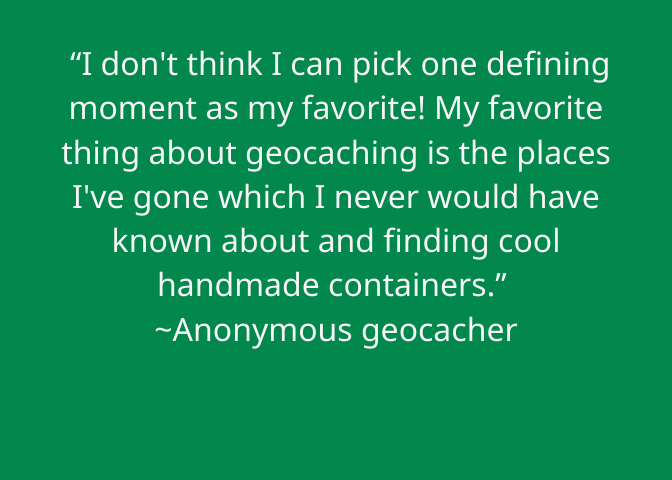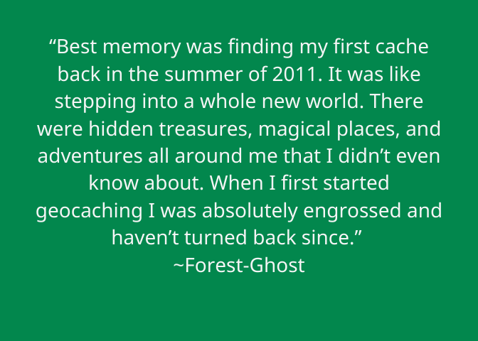 Last month we asked you to share what your favorite geocaching memories have been since 2000, and what your vision for the next 20 years is. All we have to say is, wow! You did not disappoint. We received hundreds of responses from all over the world sharing stories, goals, and everything in between. After reading through each and every response, we’re sharing 20 stories that left us feeling inspired and motivated.
