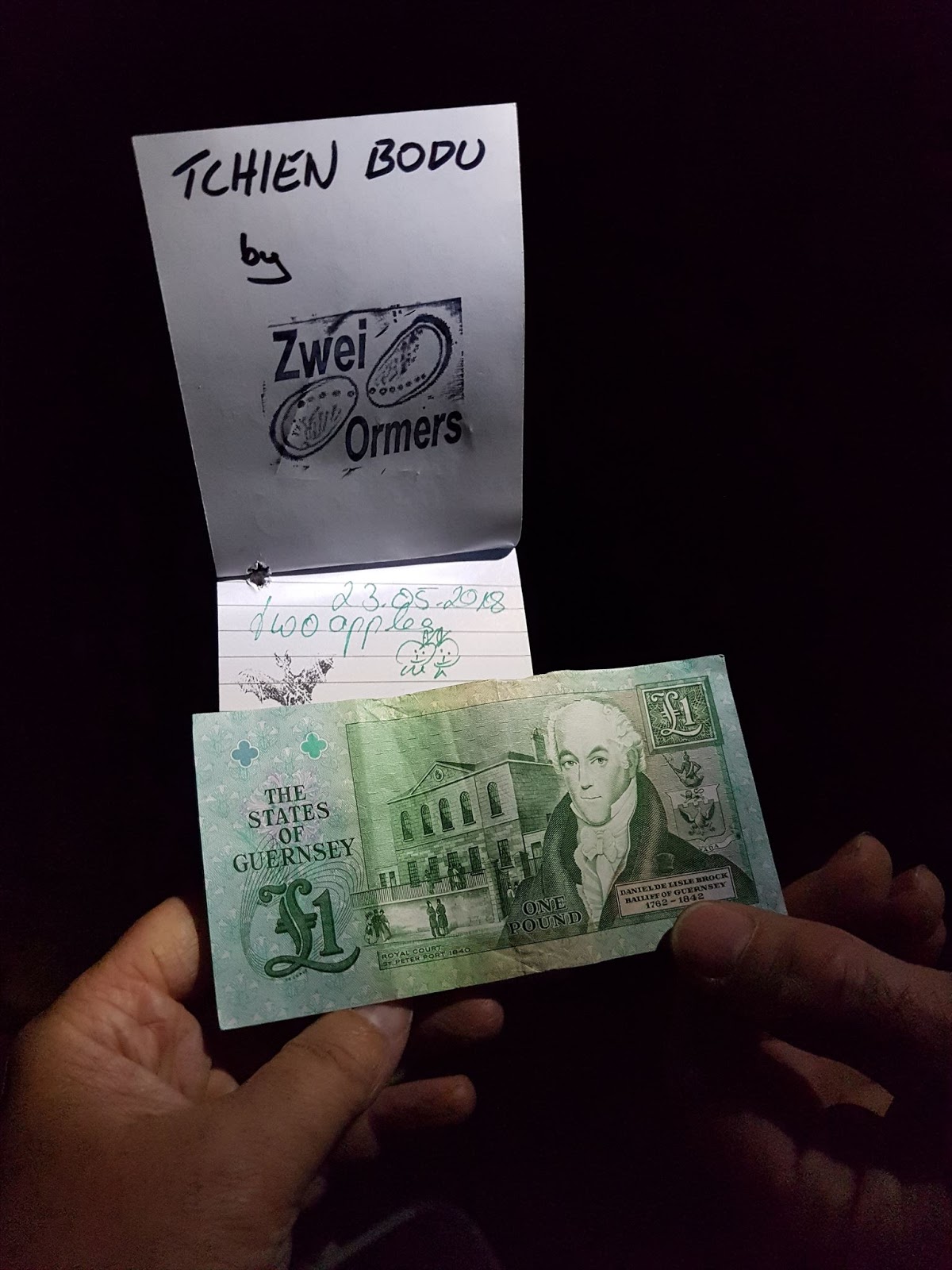As cache owner ZweiOrmers explains in the cache description, the name of the geocache, Le Tchien Bodu, is Guernesaiase for “the Evil Dog” or “the Dog of Death,” and comes from old Guernsey folklore. Le Tchien Bodu was a fearsome black dog with fiery eyes who prowled around Guernsey with a loud chain trailing behind him. A sighting of the dog was a bad omen, foreshadowing strings of DNFs for anyone who saw the terrifying creature.