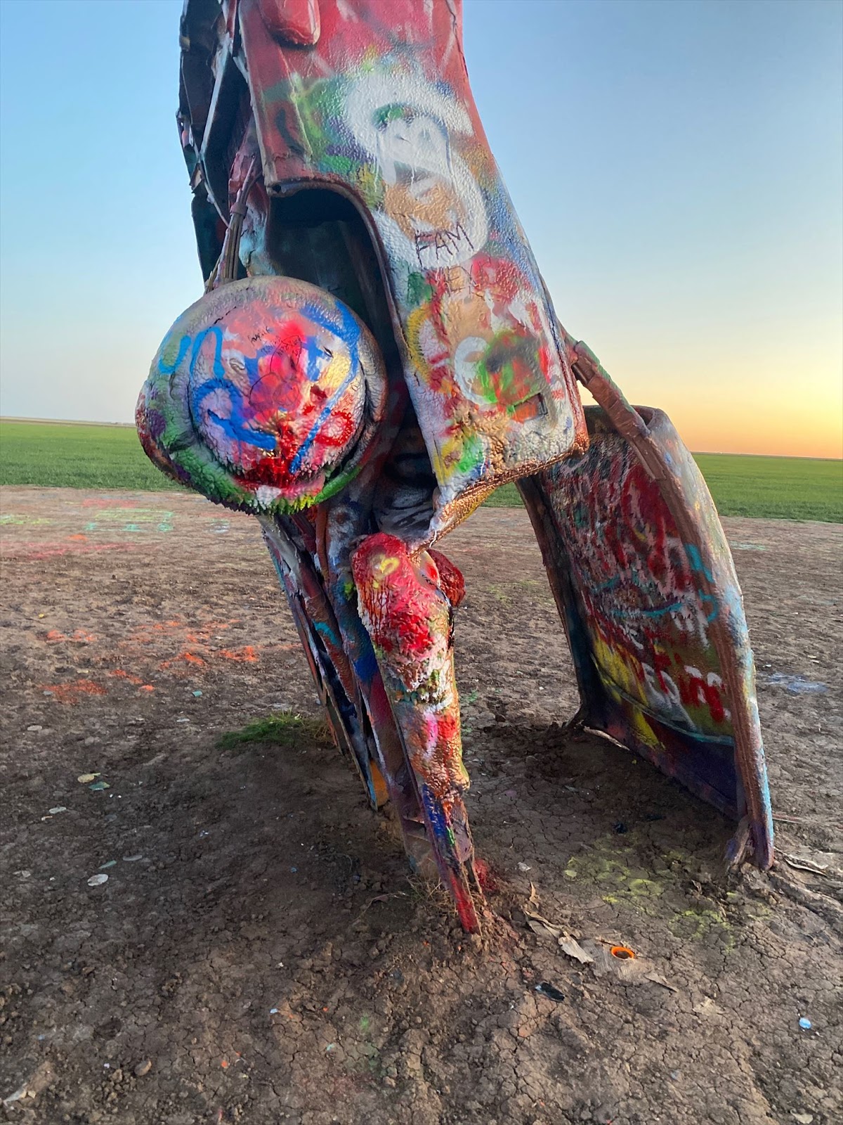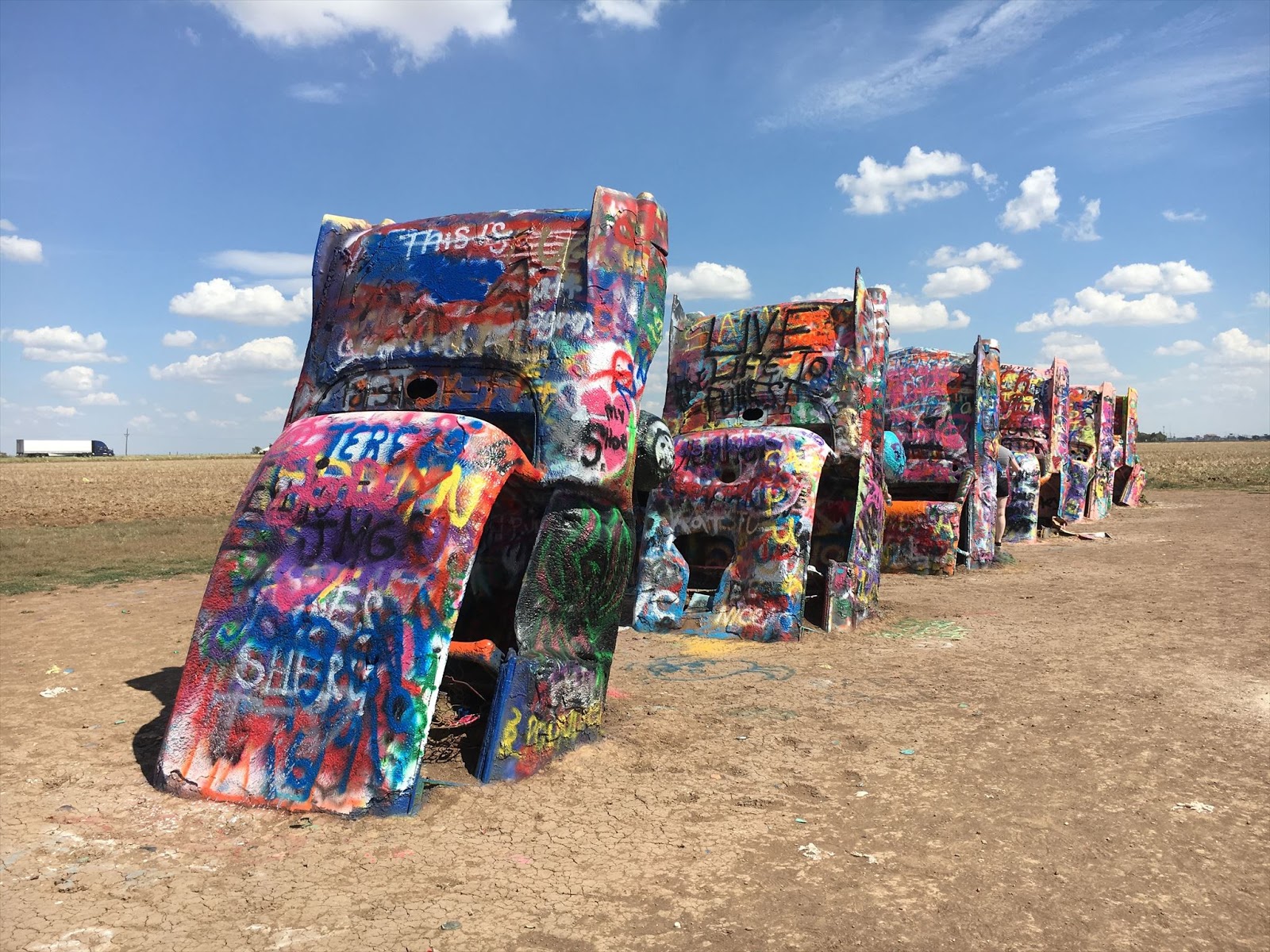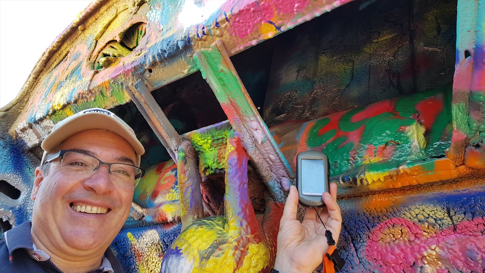 The cache is named for the art installation that it is hidden in: Cadillac Ranch Cars. It was created in 1974 by artists, Chip Lord, Hudson Marquez and Doug Michels, who were a part of the art group Ant Farm. The installation is made up of a row of 10 Cadillac automobiles half-buried in the ground. The cars were first displayed with their original paint colors, but now the artwork’s owner allows visitors to add to the installation by creating graffiti and spray painting on the cars. This has transformed the cars into a brightly colored spectacle and a feast for the eyes.