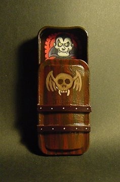 Una lata vacia de caramelos, un poco de pintura, unos cordones de cuero pegados y algo más de pintura, y tienes un geocaché aterradoramente bonito. ¡No olvides agregar el libro de registro!