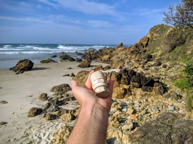 Australia is surrounded entirely by oceans. After finding this geocache, you can look up from the ground where the container was hiding and gaze out towards a seemingly endless sea of water. It is one of those special moments where you take a big, deep breath to drink in the moment before logging your find.