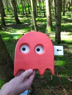 The next stage presents a change of pace, as one will not find an electronic game. Rather, a wooden Pac-Man puzzle holds the coordinates for the next waypoint. As TeamNetzZwerg states, “It was important to us from the start that the geocache should be a mixture of technical gadgets and traditional boxes, so that the fun of searching is not neglected.”