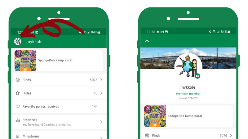 Visit your mobile profile to view and sort a list of your finds and hides, see a preview of souvenirs you earned, update your profile picture from the collapsible header, and more. You can even view other players’ lists of hides from their profiles!