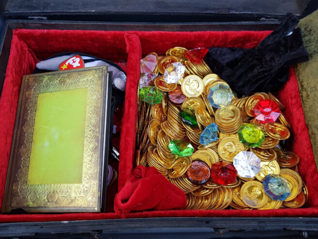 Bright shining jewels and tons of gold doubloons blind you as you slowly open the final cache container. You did it, Goonie! You’ve escaped the booby traps that guard the treasure and dodged the Fratellis. One-Eyed Willy is proud of your determination and pirate-like skills; only a real Goonie would be able to find his jewels. Finally, you let out a big sigh of relief with the jewels and the cache container in your hand.