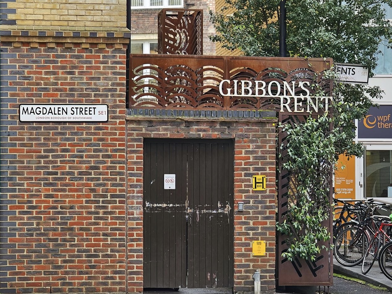 Peel off busy Tooley St. onto Magdalen St., where the journey into the secret garden begins. The Shard, the tallest building in the United Kingdom, towers above just a few blocks away. Stroll down the narrow pathway between buildings and approach GZ. Suddenly, it becomes clear that this is not just any city walkway. This is a community garden hidden in the heart of London!
