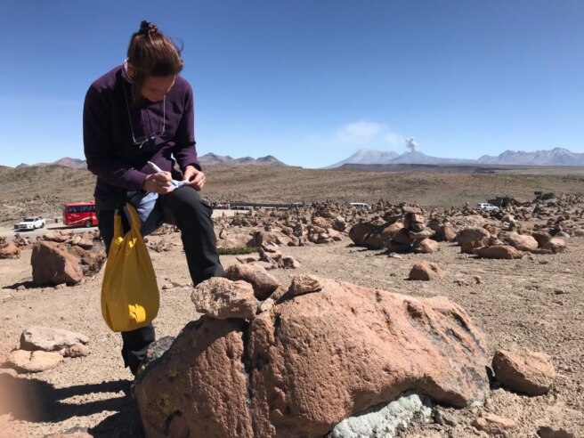 This cache’s 1.5 Terrain rating is deceiving as it doesn’t take into account the altitude, which can overcome even the toughest geocacher. At 16,000 feet, many experience shortness of breath, headaches, and confusion. Slow and steady is the real hint to finding this cache. Take time to catch your breath and enjoy the views as you search. You may even catch a glimpse of the volcano Sabancaya erupting in the distance.