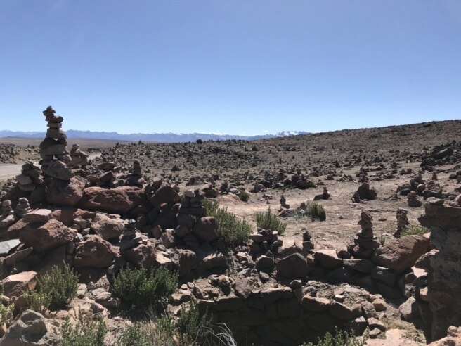 Patapampa means high plains in the Quechua language—a fitting name for the high mountain pass where this cache resides. For centuries, countless travelers used this pass to cross the Andes, leaving behind thousands of apachetas (stacks of rocks) to mark their journey. However, before an exhaustive search among the rocks, a wise geocacher knows to check the cache page for clues.