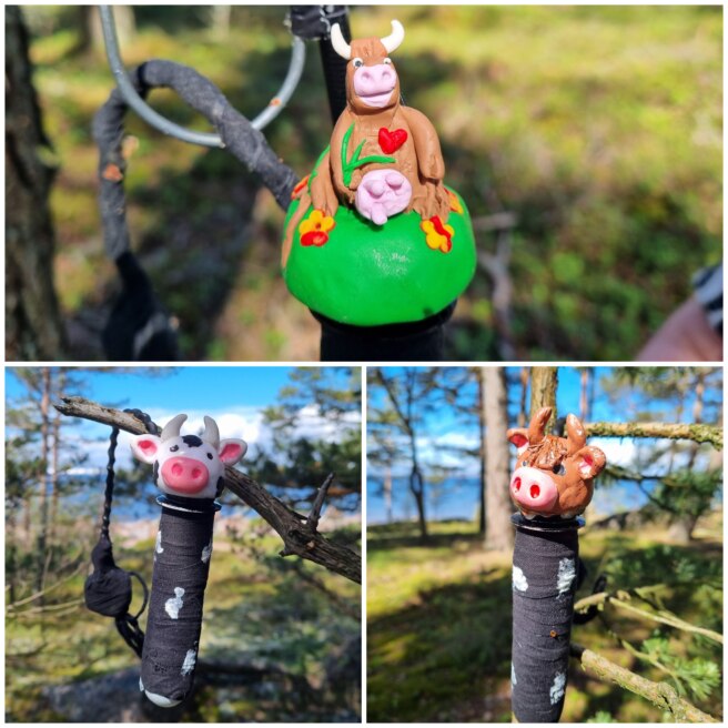Images by Bacajo and kattikimulit. Did you know that cows can fly? They certainly can on Lehmäsaari, or “Cow Island!” Cache owners Bacajo and kattikimulit set out to share this popular Finnish idiom in a series of 18 caches across Lehmäsaari. Meet the colorful cast of cow characters as you find these adorable caches throughout the island!
