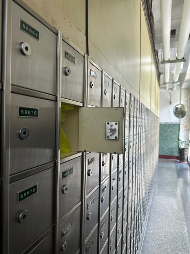 The cache lies hidden among the countless rows of P.O. boxes in a quiet hallway off the second floor. Like any good Letterbox, this geocache is filled with postcards from around the world and, of course, a stamp. Geocachers are encouraged to trade postcards and stamps, as well as any trackables that have stopped by for a visit.