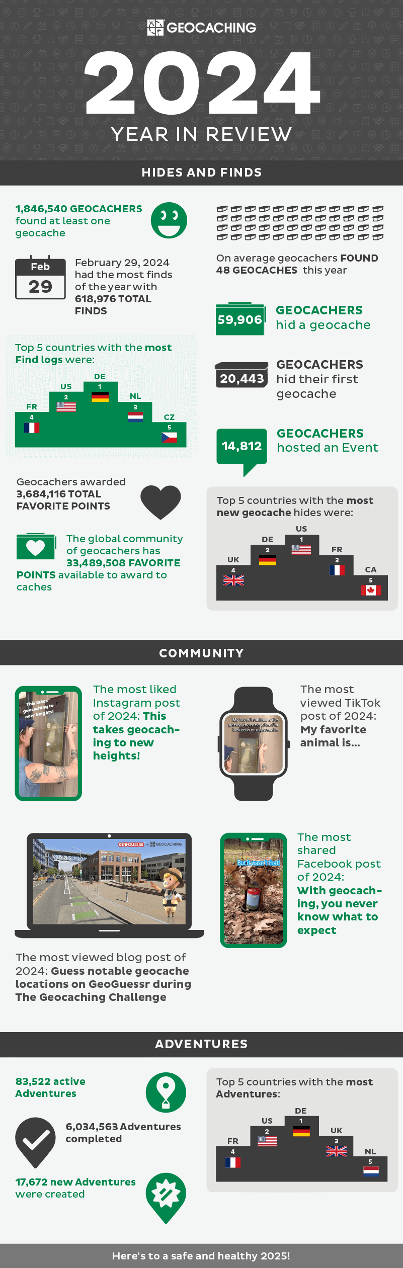 We’ve gathered some statistics that showcase the accomplishments of the geocaching community in 2024. Let’s look back and celebrate the highlights of this remarkable year together!