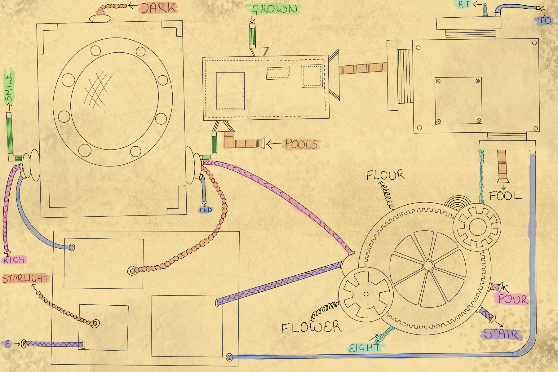 The first step of the puzzle is provided in the cache description in the form of a “homophone machine.” A word enters the machine to be spun, churned, and transformed into a new word. Based on the clues provided, one can use the machine (and a bit of logic) to generate three unique words and enter them into the solution checker.