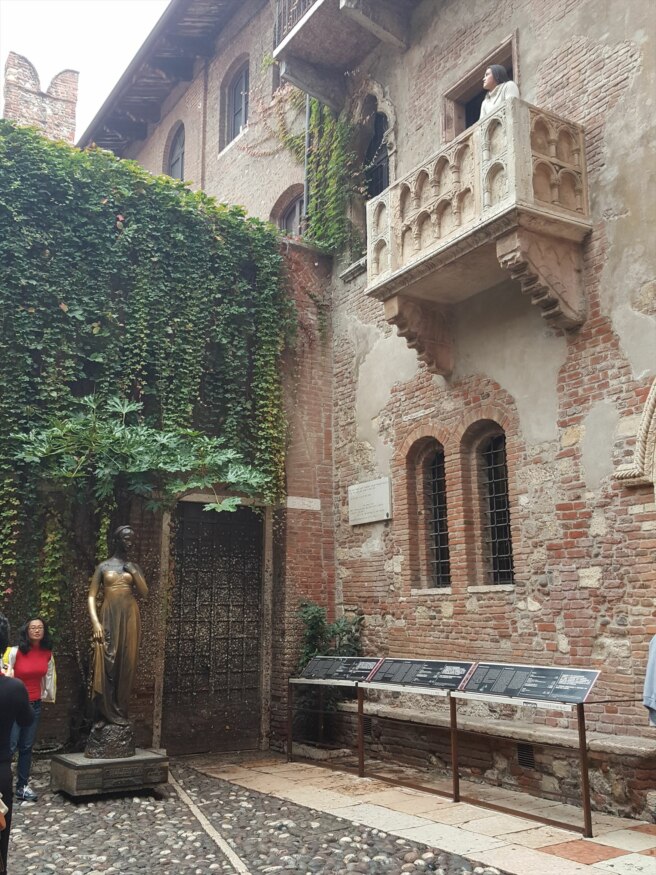 Once you reach the courtyard of Juliet’s house, you’ll be struck by the building’s ancient exposed walls and the pointed arch. But the bronze statue of Juliet truly captivates the eye, a testament to the enduring power of love.
