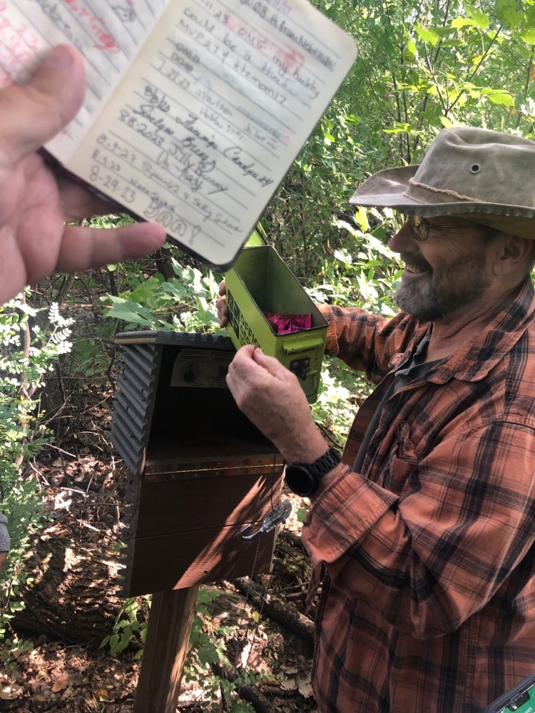 Unlike the geocache description suggests, we aren’t picking the nose of our friends, but rather picking the nose of this Geocache of the Week, Geocache Picker 101 (GC8R2RA).