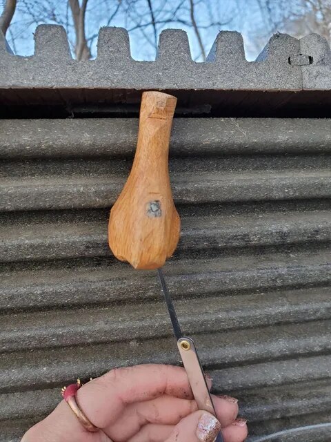 A closer look reveals that the wooden knob is not just any, but one in the shape of a nose. Nearby are the necessary TOTT – picking devices, adding to the intrigue of this cache.