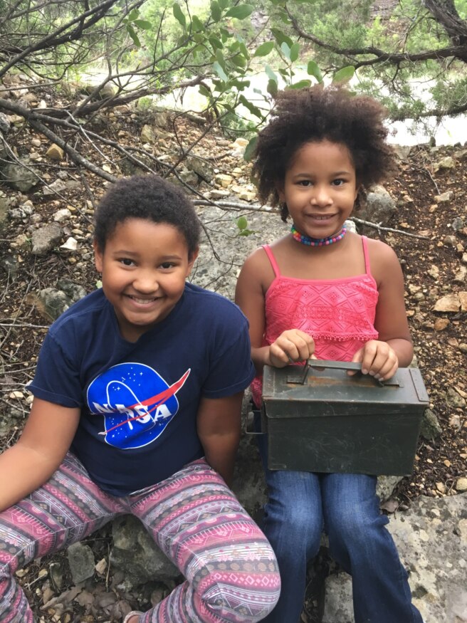 With all the photos I’ve taken of caches and cachers, the one that I always come back to is one of my daughters when they were little, holding CenTex Prime (GCEF) when they were 9 and 7 (full disclosure: I am terribly biased towards them since they were my favorite muggles and are now my favorite cachers).