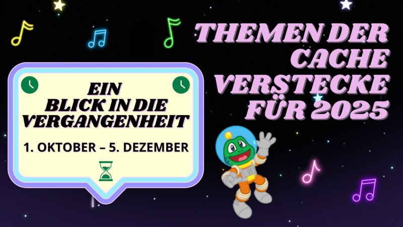- Verstecke einen Geocache, der dem Thema “Rückblick auf die Vergangenheit” entspricht. Nominiere zwischen dem 1. Oktober und dem 5. Dezember 2025 Deinen Geocache, indem Du dieses Formular ausfüllst.