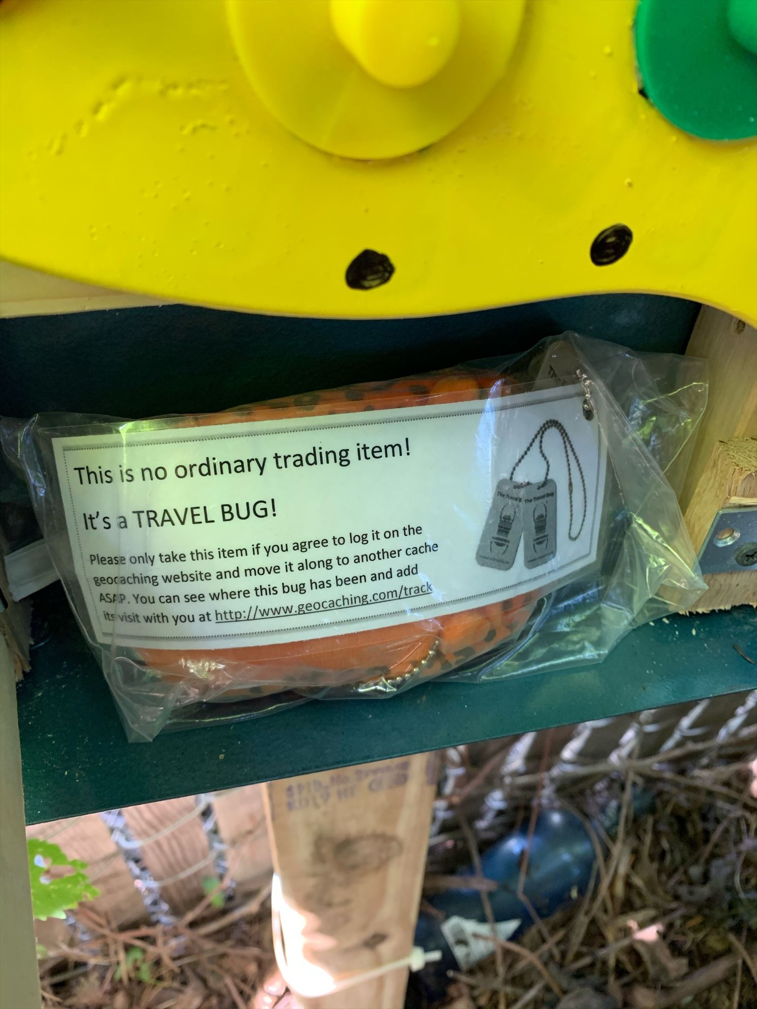 Once you’ve cracked Joey’s code and used it to release the final compartment, the geocache reveals itself, complete with the log sheet and lots of SWAG.